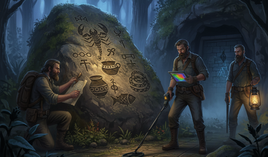 Mağaranın içine girildiğinde karanlıksa aydınlatılmalı ve tavan veya duvarlardan özenle kesilmiş taş var mı incelenmelidir. Kesme yolu ile taş çıkarılmışsa mağarada bir şeylerin olabileceğine işaret eder. Ancak bunun tuzak veya aldatmaca olduğunu iyi öğrenmek incelemek gerekir. Taş çıkarılmış mağaranın dolu olma olasılığı çok yüksektir. Ancak tehlike oranının da çok yüksek olduğu unutulmamalıdır. Acemice davranarak iz, işaret ve sembolleri yok edilmemelidir.